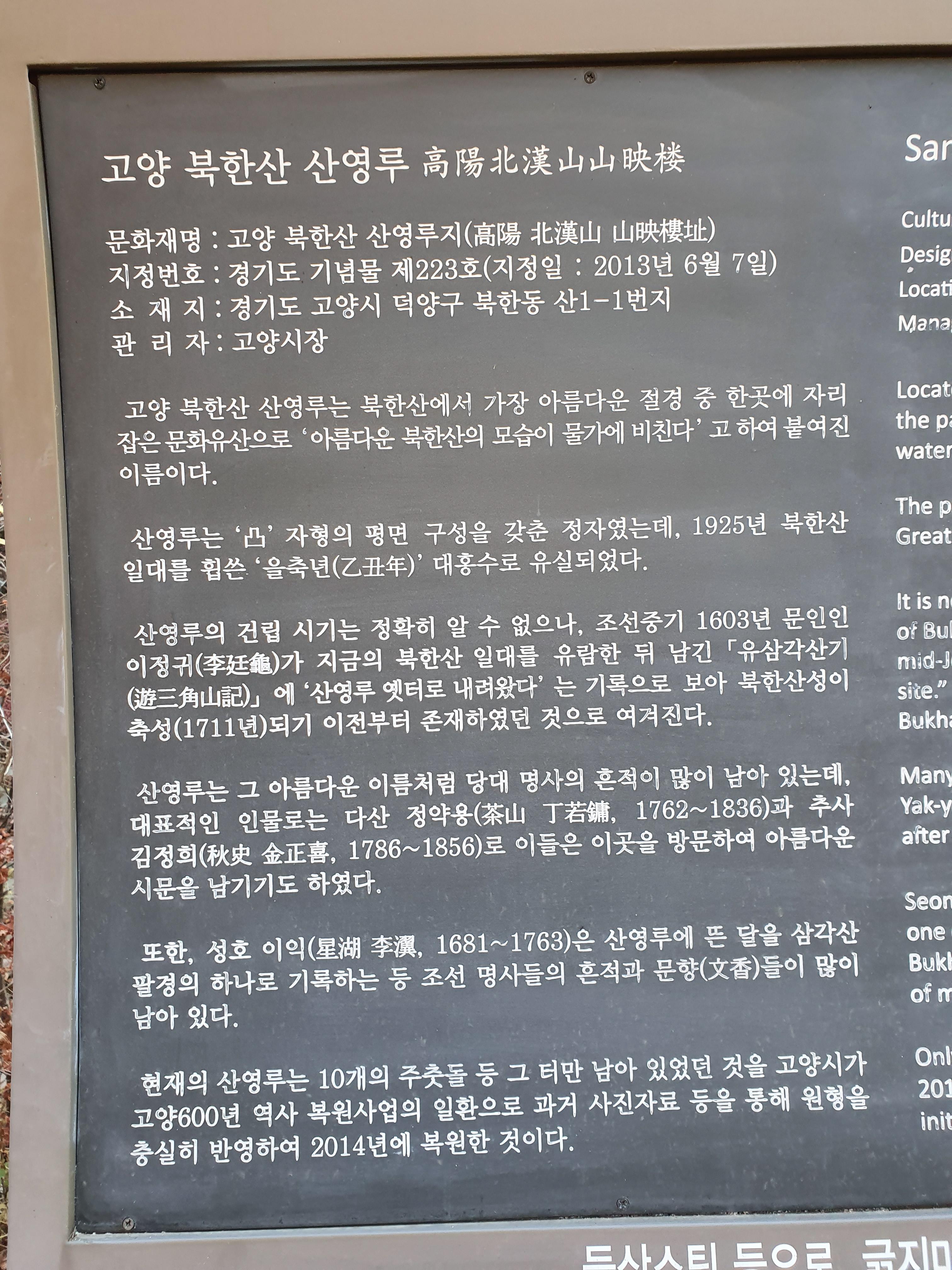 북한산성 삼거리 위에 위치한 산영루
